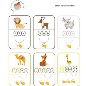 Popis materiálu : Kartičky so slabikami – zvieratá (58 kartičiek) Súbor obsahuje 58 kartičiek so zvieratami, rozdelených