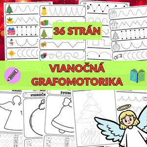 Vianočná grafomotorika je súbor 36 strán aktivít, ktoré pomáhajú deťom rozvíjať jemnú motoriku, koordináciu ruky a oka