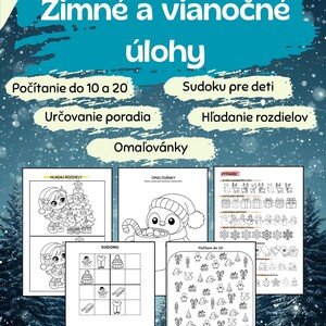 Zimné a vianočné úlohy Tento materiál obsahuje súbor zimných a vianočných pracovných listov určených pre MŠ a 1. stupeň