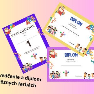 Polročné vysvedčenie a diplom pre ŠKD, stačí vytlačiť a dopísať meno. V 3 farebných prevedeniach.
