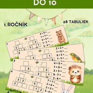 Obsah: Materiál obsahuje tabuľky s pyramídami a príkladmi na sčítanie a odčítanie do 10 v 1. ročníku. Materiál postupne