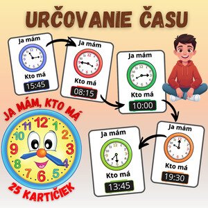 🕗ZÁBAVNÉ URČOVANIE ČASU Precvičovanie času pre žiakov interaktívnou a hravou formou. Zábavná hra Ja mám, kto má motivuje