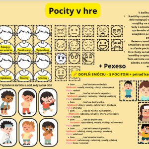 Emócie pre 1. stupeň ZŠ Hľadáte jednoduchý a zábavný spôsob, ako učiť deti spoznávať a pomenúvať emócie? Tento balík je