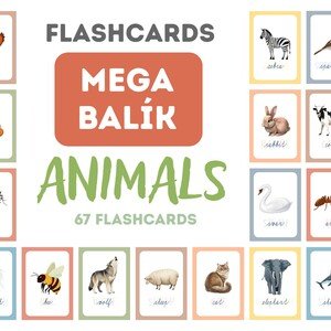 Materiál obsahuje rozsiahlu sadu didaktických flashcards (67 kusov) zameranú na slovnú zásobu z oblasti zvierat v
