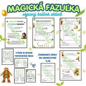 Hravý vzdelávací balíček, ktorý prevedie deti príbehom o čarovnej fazuľke a ponúkne im 4 prepojené aktivity. Deti budú