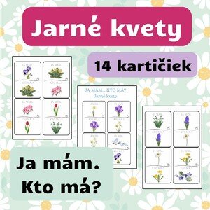 Súbor obsahuje celkovo 14 kartičiek: 14 kartičiek – JA MÁM... KTO MÁ? (Jarné kvety) Kartičky je vhodné zalaminovať alebo