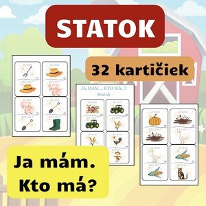 Súbor obsahuje celkovo 32 kartičiek na tému: Statok (Farma). Kartičky je vhodné zalaminovať alebo vytlačiť na tvrdý