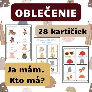 Súbor obsahuje celkovo 28 kartičiek na tému: Oblečenie. Kartičky je vhodné zalaminovať alebo vytlačiť na tvrdý papier