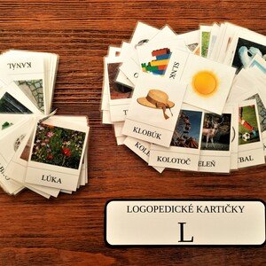 Logopedické kartičky na hlásku L - 54 kusov s rozmerom 8x6 cm. Vznikli v spolupráci s logopédom. Jednotlivé slová sú