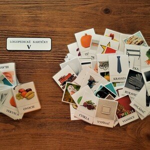 Logopedické kartičky na hlásku V - 54 kusov s rozmerom 8x6 cm. Vznikli v spolupráci s logopédom. Jednotlivé slová sú