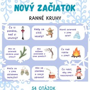 Obsah: Materiál obsahuje 54 kariet na Vianočné ranné kruhy. Týka sa to tém: Zima, Nový rok, Nový začiatok, Prebúdzanie