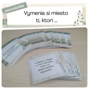 Dobrý deň, v PDF nájdete 54 kartičiek s otázkami na novoročnú hru Vymenia si miesto tí, ktorí..., v ktorej takto spolu