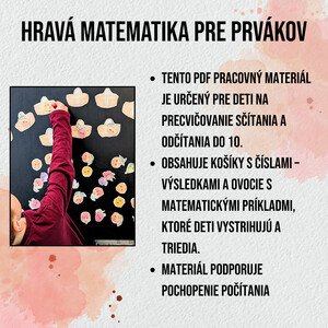 Počítanie, ktoré deti baví! Pri kúpe PDF dostanete košíky s číslami a ovocie s príkladmi na sčítanie a odčítanie do 10
