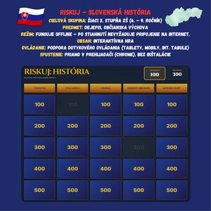 🏰 Riskuj! – Slovenská história (Interaktívna hra) Premeňte hodinu dejepisu na napínavý súboj vedomostí! Táto digitálna