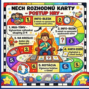 📝 NECH ROZHODNÚ KARTY 🎯 Opakovacia hra pred testom, ranné kruhy, ľubovoľné aktivity 👥 Ako hráme? Trieda sa rozdelí na