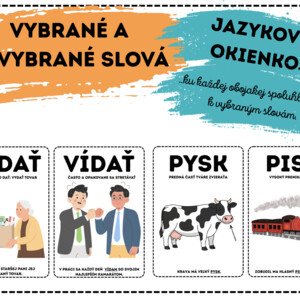 MATERIÁL OBSAHUJE: -52 pojmov (26 dvojíc) vybraných a nevybraných slov -slová sú doplnené o obrázok, vysvetlenie ich