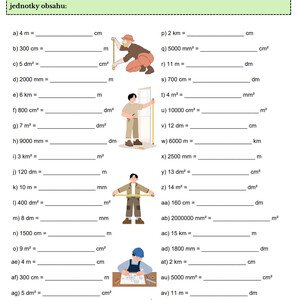 Pracovný list na premenu jednotiek dĺžky a obsahu. Premeny sú pomiešané. Na začiatku pracovného listu, si žiaci môžu