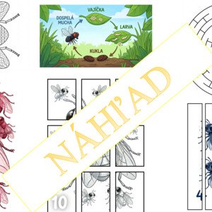 Vhodné predetiod 2 – 6 rokov. Súbor obsahuje 30 strán. 1) Hra plácni / nájdi muchu 2) Pohybová riekanka 3) Cyklus života