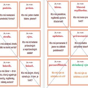 Hra obsahuje 4 strany, na ktorých je vytvorených 36 kartičiek. Na kartičkách sú formou hry Ja mám, kto má vytvorené