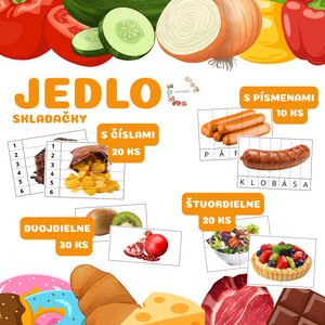 Súbor obsahuje celkom 80 skladačiek s obrázkami potravín. V súbore nájdete: 20 skladačiek s číslami, 10 skladačiek s