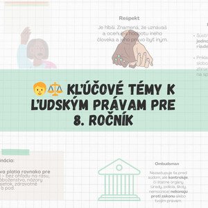 🧑⚖️ Kľúčové témy k ľudským právam pre 8. ročník Tieto učebné materiály ponúkajú prehľadné a zrozumiteľné zhrnutie
