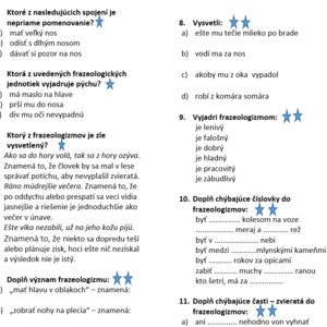 Test je vytvorený ako gradovaný, od najľahších úloh (jedna ★) až po najnáročnejšie (tri ★). Postupne preveruje úrovne