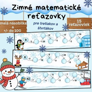 ❄️ Zimné matematické reťazovky – malá násobilka a počítanie do 100 ❄️ 15 zábavných úloh pre tretiakov a štvrtákov Zimné