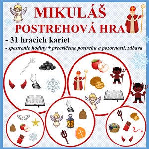 Materiál obsahuje 6 strán A4 s celkovo 31 kartičkami, na ktorých je vždy 6 obrázkov s mikulášskou tematikou. Hru využijú