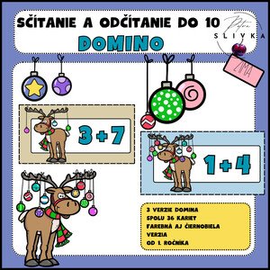 Zimné domino so sobmi je hravý didaktický materiál určený pre žiakov 1. ročníka. Pomocou veselých kartičiek deti