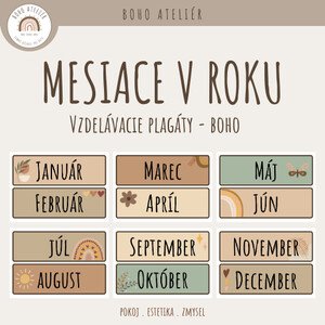 Sada boho plagátov s mesiacmi v roku, navrhnutá ako súčasť modulárneho triedneho kalendára. Plagáty slúžia ako základný