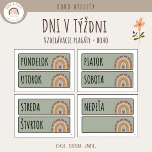 Sada boho plagátov s dňami v týždni, navrhnutá ako súčasť modulárneho triedneho kalendára. Plagáty slúžia ako základný