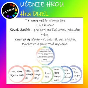 HRA DUEL – KRUHY Rýchla slovná hra, ktorá zabaví aj naučí! 🎯 Tri sady zábavných kategórií Hráči súťažia, kto skôr