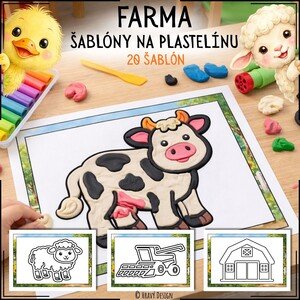 Súbor obsahuje 20 šablón vo formáte A4 s motívmi farmy, ktoré sú určené na dotváranie plastelínou. Deti pri práci