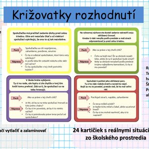 Kartičky Križovatky rozhodnutí je praktická pomôcka, ktorá obsahuje 24 autentických situácií zo života žiakov v škole