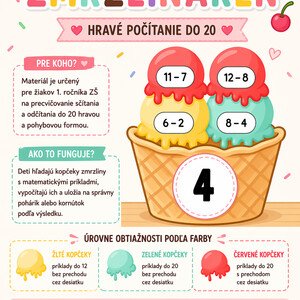 Zábavná pohybová aktivita pre žiakov 1. ročníka ZŠ, pri ktorej deti hľadajú po triede kopčeky zmrzliny s matematickými