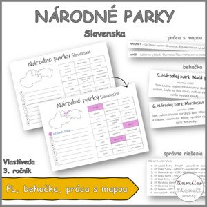 Cestujte naprieč Slovenskom a objavujte Národné parky Slovenska. V súbore nájdete pracovný list s mapu a tabuľkou, 9