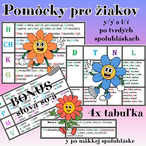 📚Pomôcky pre žiakov 2.ročník Súbor obsahuje 2 tabuľky so slovami s y/ý a i/í po tvrdých spoluhláskach h, ch, k, g, d, t