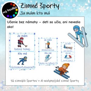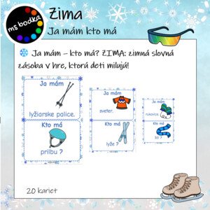 Materiál obsahuje 7 strán A4 s prehľadom všetkých obrázkov a spolu 31 kartičiek, na ktorých je vždy 6 obrázkov so zimnou