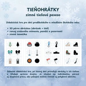 Poznáte, ktorý tieň patrí snehuliakovi? Súbor, ktorý je zameraný na rozvoj zrakového vnímania, obsahuje: - 20 tabuliek s