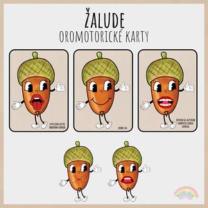 Súbor obsahuje 10 oromotorických kariet na tému Žalude . Každá kartička znázorňuje a popisuje jednoduchý cvik na