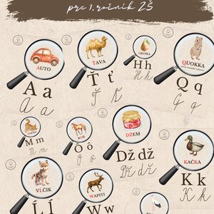 Detektívna abeceda Materiál obsahuje: Písmená slovenskej abecedy (nápovedné obrázky s písmenami). Materiál (vrátane