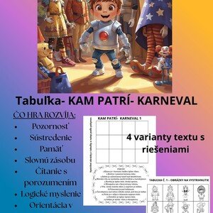 Tabuľka – Kam patrí? – Karneval 4 varianty textu s riešeniami Táto aktivita spája čítanie s porozumením, logické