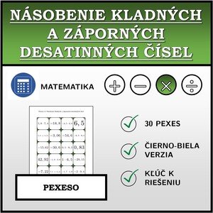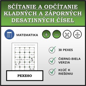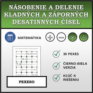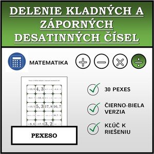 Obsah výučbového materiálu V materiáli sa nachádza celkom 30 sád pexesa na tému delenie kladných a záporných desatinných