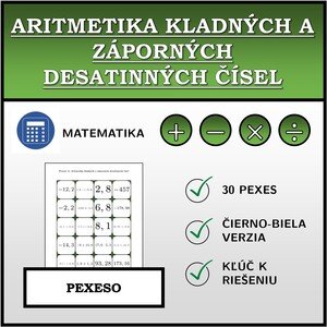 Obsah výučbového materiálu V materiáli sa nachádza celkom 30 sád pexesa na tému aritmetika kladných a záporných