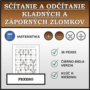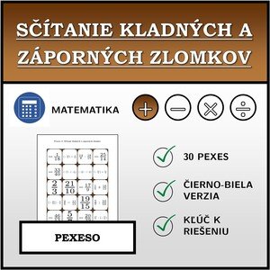 Obsah výučbového materiálu V materiáli sa nachádza celkom 30 sád pexesa na tému odčítanie kladných a záporných zlomkov v