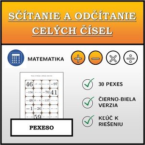 Obsah výučbového materiálu V materiáli sa nachádza celkom 30 sád pexesa na tému sčítanie a odčítanie celých čísel v