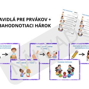 PRAVIDLÁ NA VYUČOVANIE PRE PRVÁKOV (hodnotiace hárky sú obrázkové a žiaci dané činnosti hodnotia vyfarbovaním smajlíkov