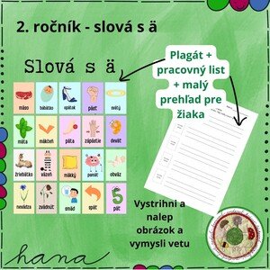Slová s ä - 2. ročník PRACOVNÝ LIST - PLAGÁT A4 - MALÝ PREHĽAD A6 Použitie: PRACOVNÝ LIST (strany 2, 3) + nožnice