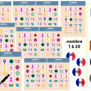 BINGO číslovky 1-20 pre žiakov francúzskeho jazyka. Možnosť tlače vo formáte A4, A5 alebo A6. Sada obsahuje 12 hracích