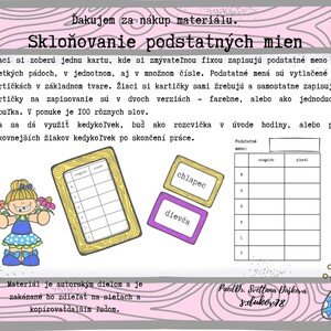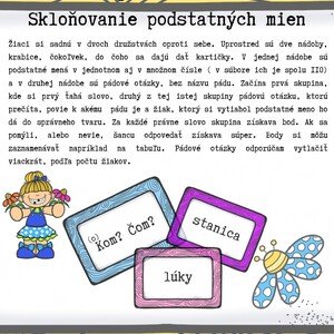 Žiaci si zoberú jednu kartu, kde si zmývateľnou fixou zapisujú podstatné meno vo všetkých pádoch, v jednotnom, aj v